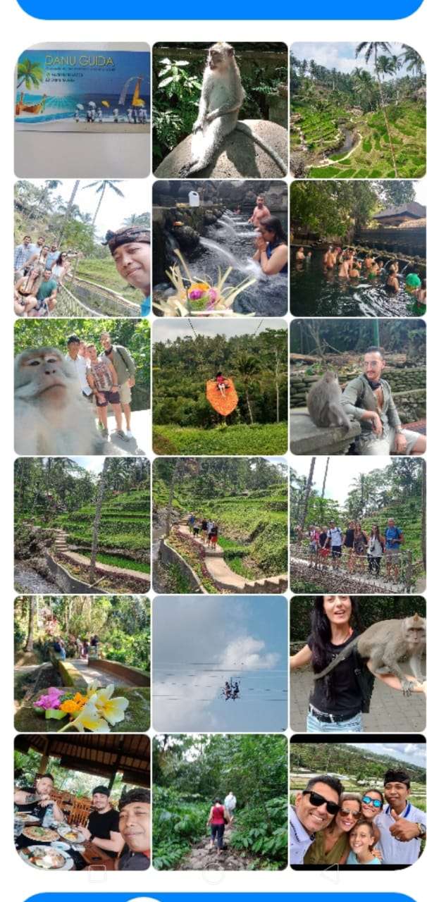 Temple of purification, monkey forest The first stop we will see the monkey forest Ubud that was very familiar monkeys Second stage we will go to purification Temple of Tirta Empul, next break for lunch in front of rice paddies after lunch We will visiting coffee and cocoa plant and taste coffee on the jungle and We will see very famous rice fields of Tegallalang and enjoy the SWING on the rice fields and Back to hotel.